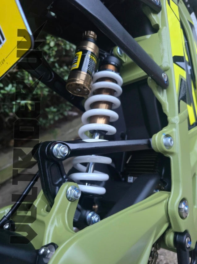 To keep up with the increased motor output and new wheel setup, the suspension system has been re-tuned. Riders will feel the difference in: